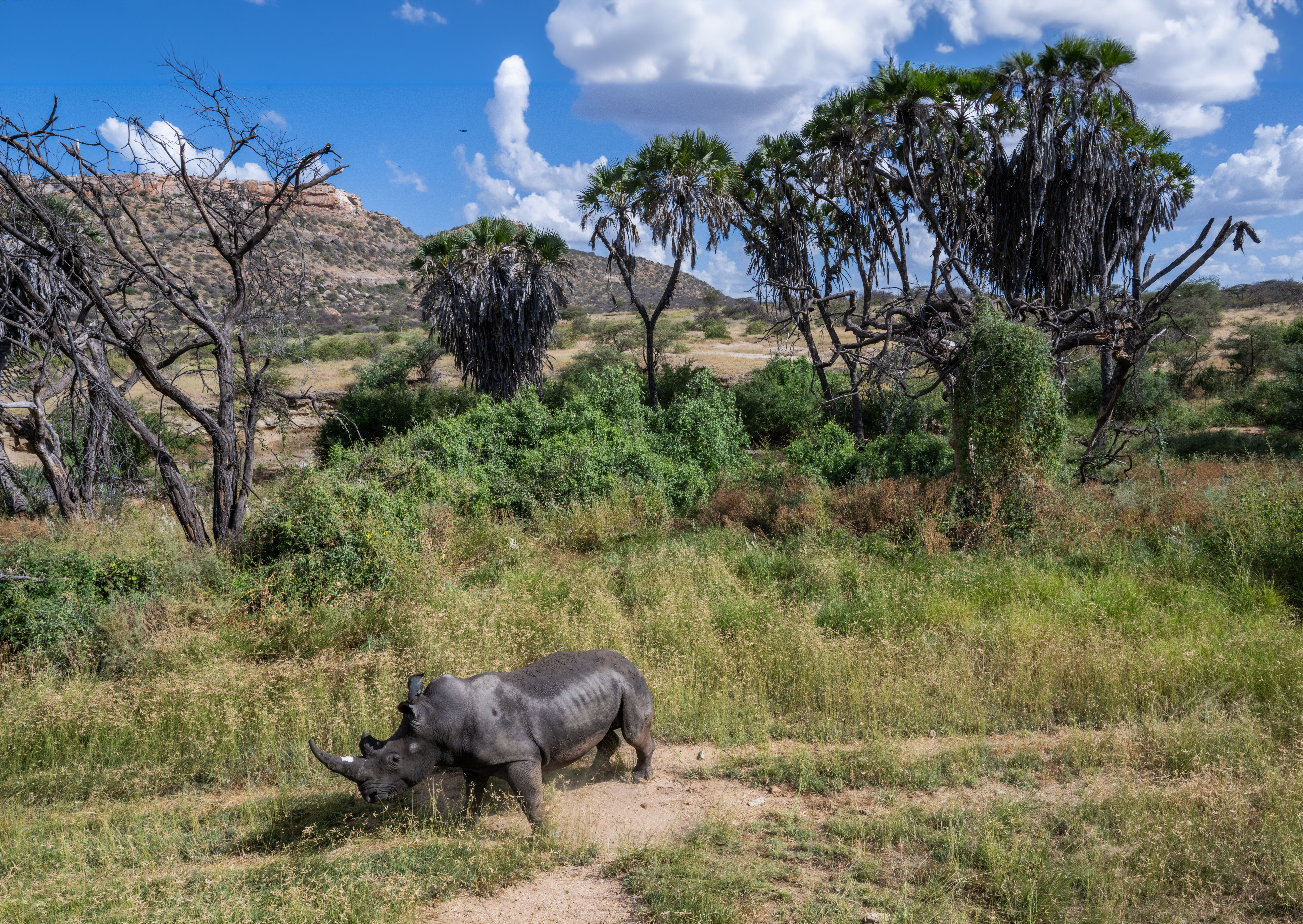 Hot on the heels of relocating a dozen Eastern black rhinos from Lewa to Loisaba Conservancy, we have achieved another milestone by introducing four white rhinos to Sera Conservancy. This community-led conservancy is located along the Isiolo-Marsabit road in Samburu County, 94 km north of Isiolo town, which is itself north of Lewa. This momentous occasion arrives nearly a decade after the transfer of 11 black rhinos to the same conservancy, whose population now stands at 21.